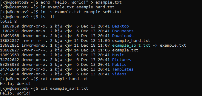 - 원본 파일과 하드 링크는 동일한 데이터에 접근하며, 파일 크기 및 내용이 같음
