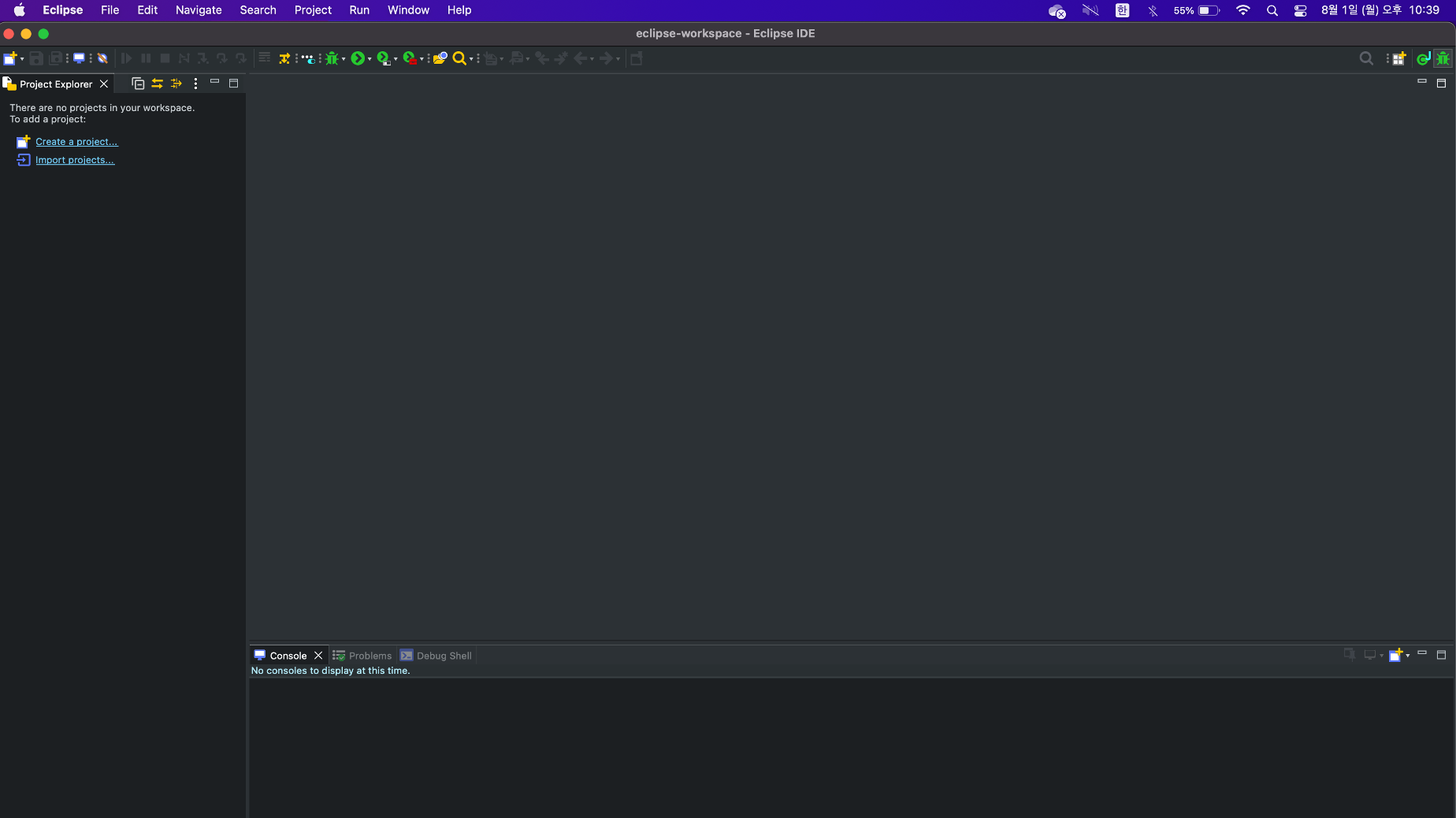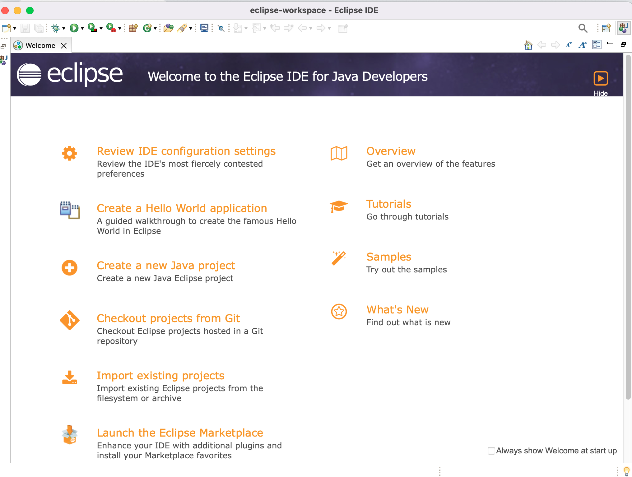 다음과 같은 화면이 나타나면 Eclipse를 정상적으로 설치 완료한 것이다.