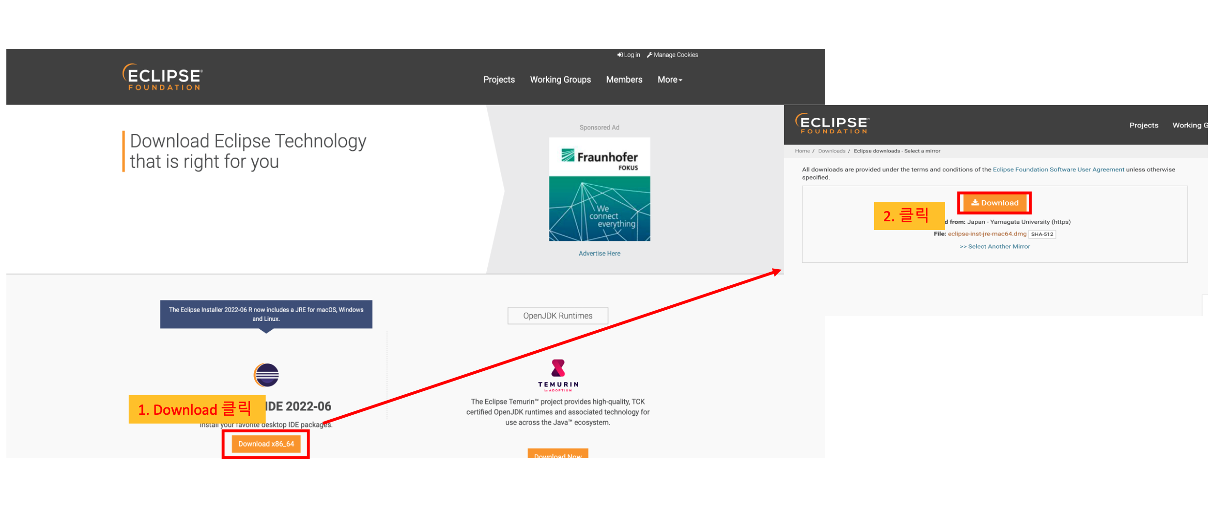 설치 파일을 아래의 이클립스 공식 페이지에서 다운로드 한다.