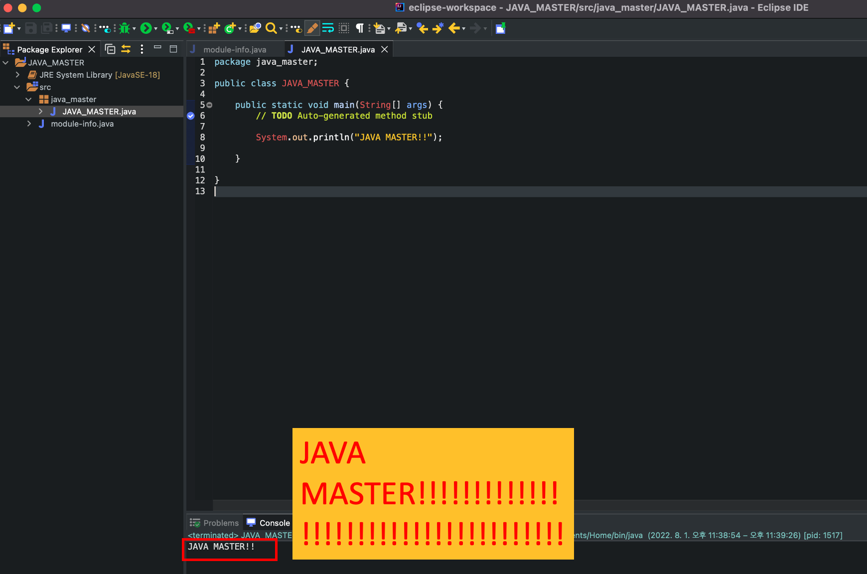 JAVA MASTER!! 컴파일 및 실행 완료!!