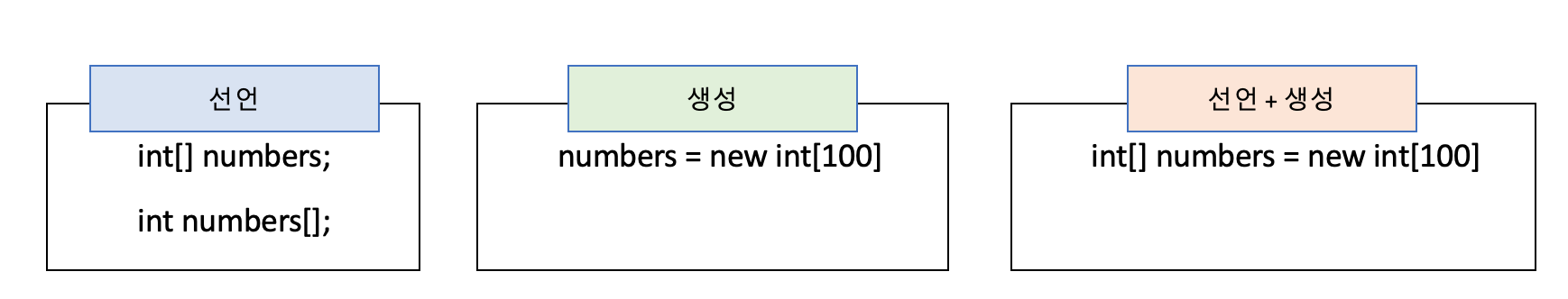선언 : 타입[] 변수이름; 또는 타입 변수이름[];