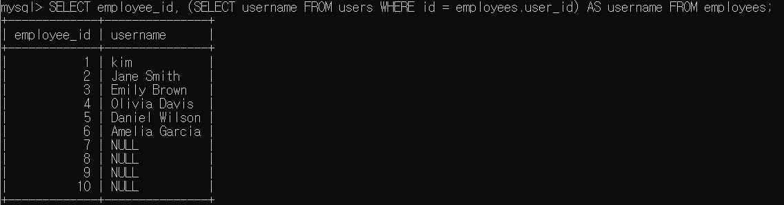 - 스칼라 서브쿼리 (Scalar Subquery)