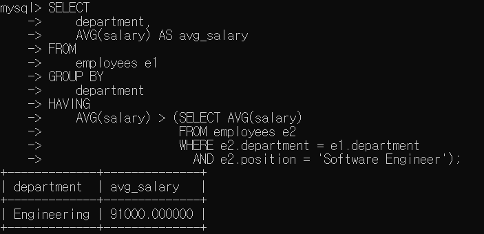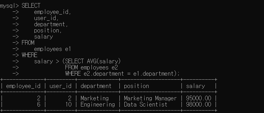 - 상관 서브쿼리 (Correlated Subquery)