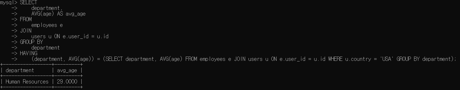 EX> HAVING