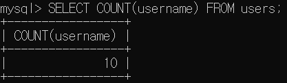 - COUNT() : 특정 열에 있는 행의 수를 반환