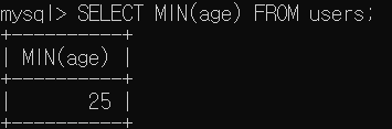 - MIN() : 숫자 또는 날짜 열에서 최소값을 반환