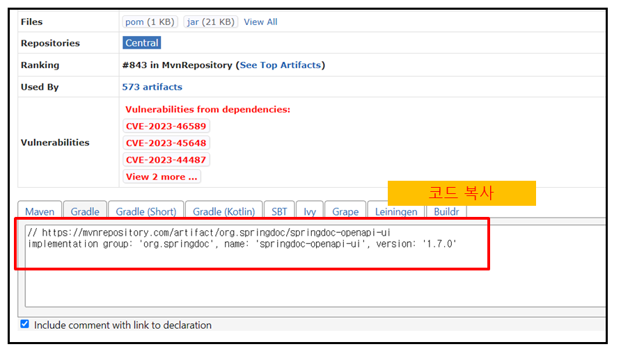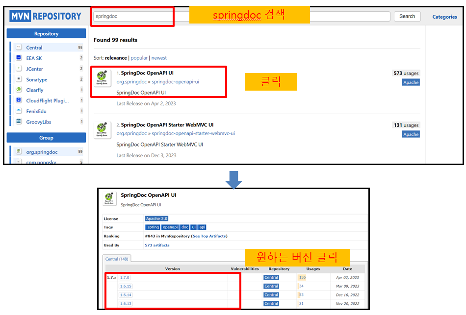 - 다음의 사이트로 이동하여 springdoc을 검색 후 설치